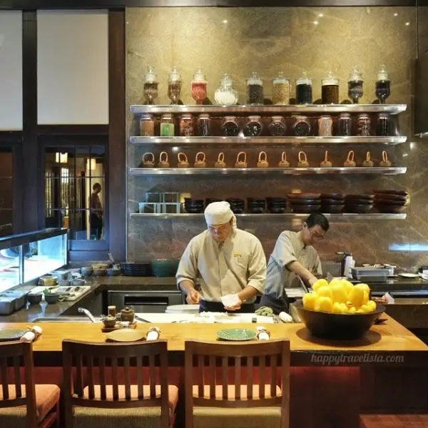 This restaurant, with its authentic Japanese setting, is undoubtedly one of the best dining places for those who enjoy a communal and interactive dining experience. It features two dining halls, each adorned with long communal tables. Where you can share your mealtime with fellow diners and lovers of Japanese cuisine. This arrangement fosters a lively and engaging atmosphere, perfect for those who appreciate the social aspect of dining.