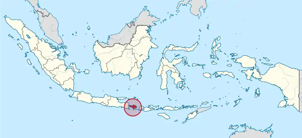 Bali is located just to the right of the island of Java and to the left of the Nusa Tenggara region.