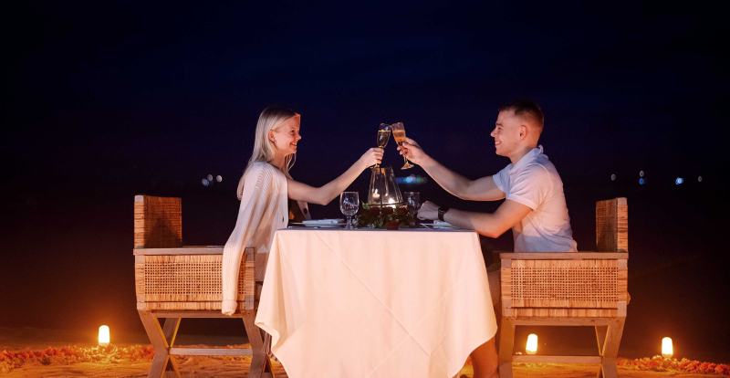 A private beachfront dinner is one of the most timeless ways to propose in Bali. Sadara Resort’s Dream Dinner by the Beach experience creates a romantic setting with candlelight, ocean views, and personalised service. The gentle sound of the waves and the soft glow of the evening create a calm and elegant atmosphere for the moment.